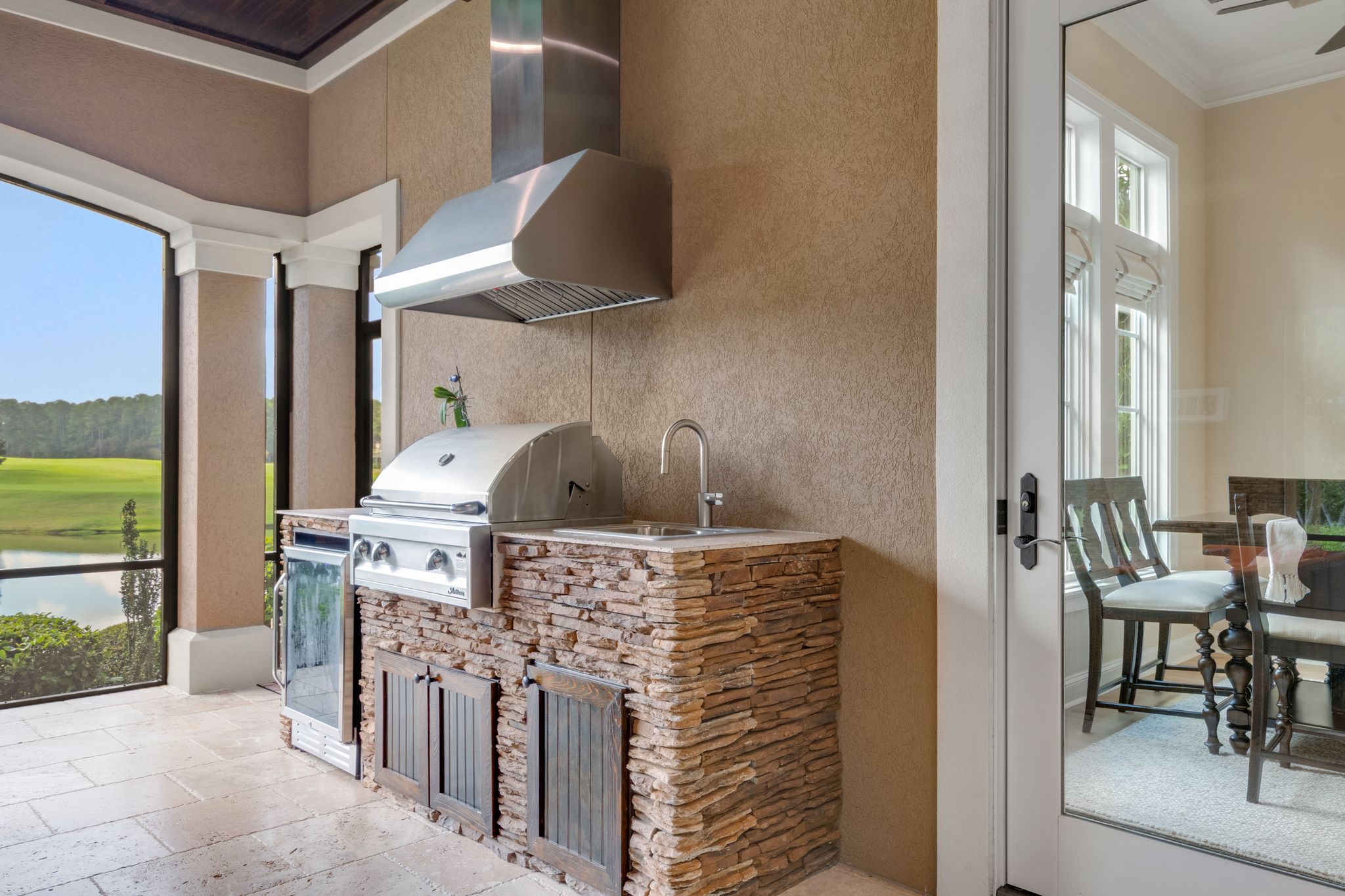 This newly renovated custom-built home is better than new, and the location is excellent. Not only does this home have fabulous views of the lagoon, golf course fairways, and fountain, this 5 bedroom, 4.5 bath home has all the spaces one might desire. The expansive open floorplan with beautiful new wood floors encompasses an inviting foyer; a spacious great room with a gas fireplace, floating shelves and extra built-in seating; a dining room with good wall space; and a gourmet kitchen with dining area. Both the kitchen and great room open to the screened porch which has exposed beams, a stone fireplace, and an outdoor kitchen. The primary bedroom opens to the screened porch and has 2 separate walk-in closets. Its accompanying bath has separate sink areas plus a vanity area, a linen closet, and a large walk-in shower with built-in bench. Bedrooms 2 and 3 have ensuite baths, as does the 5th bedroom/bonus room upstairs which opens to a porch, offering long scenic views. The 2-car plus golf cart garage has storage space as well. The many recent renovations include 3 HVACs; a tankless water heater; wood flooring; new kitchen appliances, backsplash, counters, sink, faucet, lighting; new washer, dryer, counter, sink, and faucet in laundry room; updated master bath with new sinks, faucets, counters, mirrors, and lighting; all-new powder room; new lighting in foyer and dining room; stripped and restained front door; new treads and railing on stairs; new framing and screens on screened porch; epoxy on garage floor; new driveway pavers, and new exterior lighting. With over $200,000 in renovations, this home shows like a model.