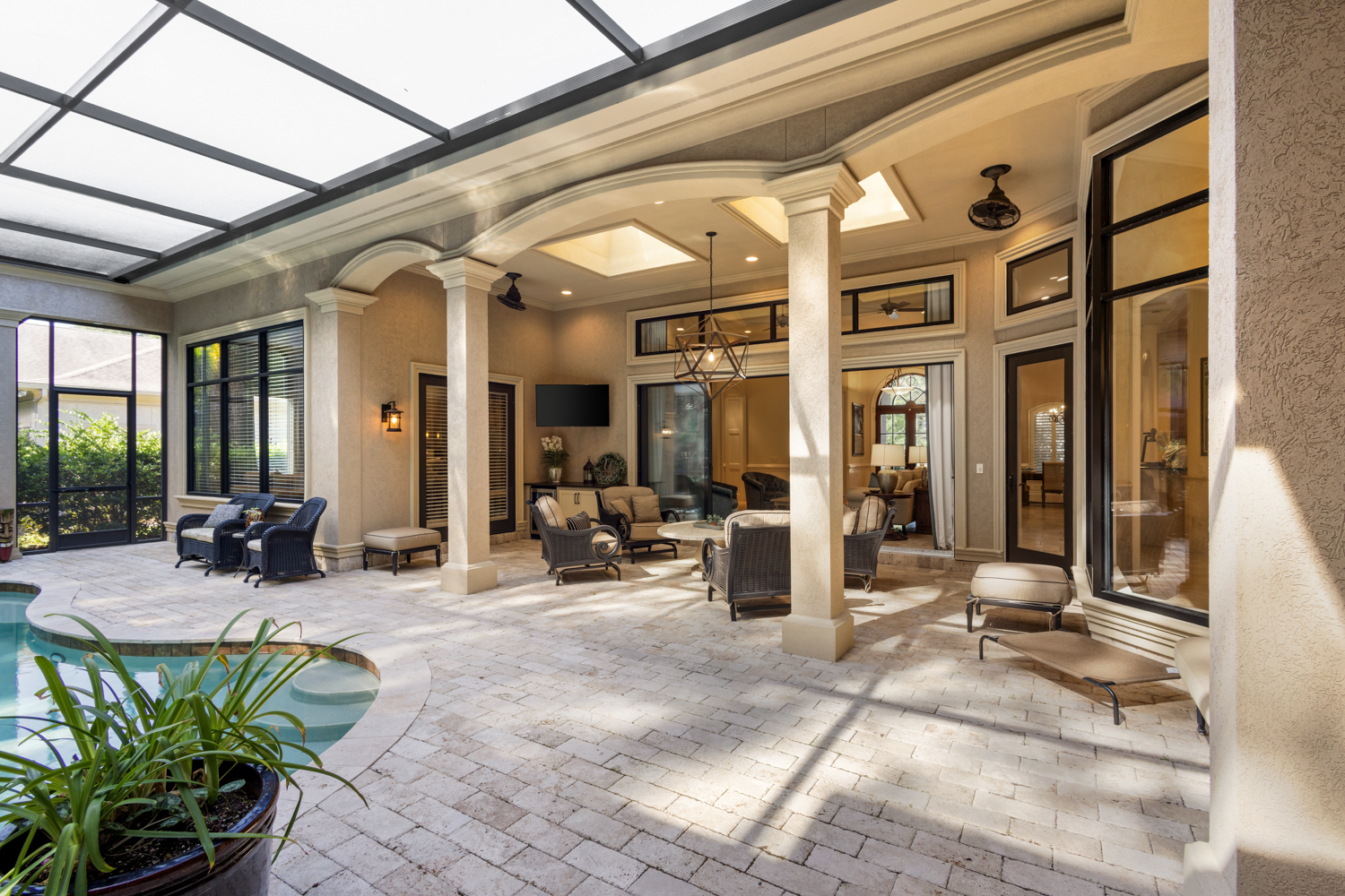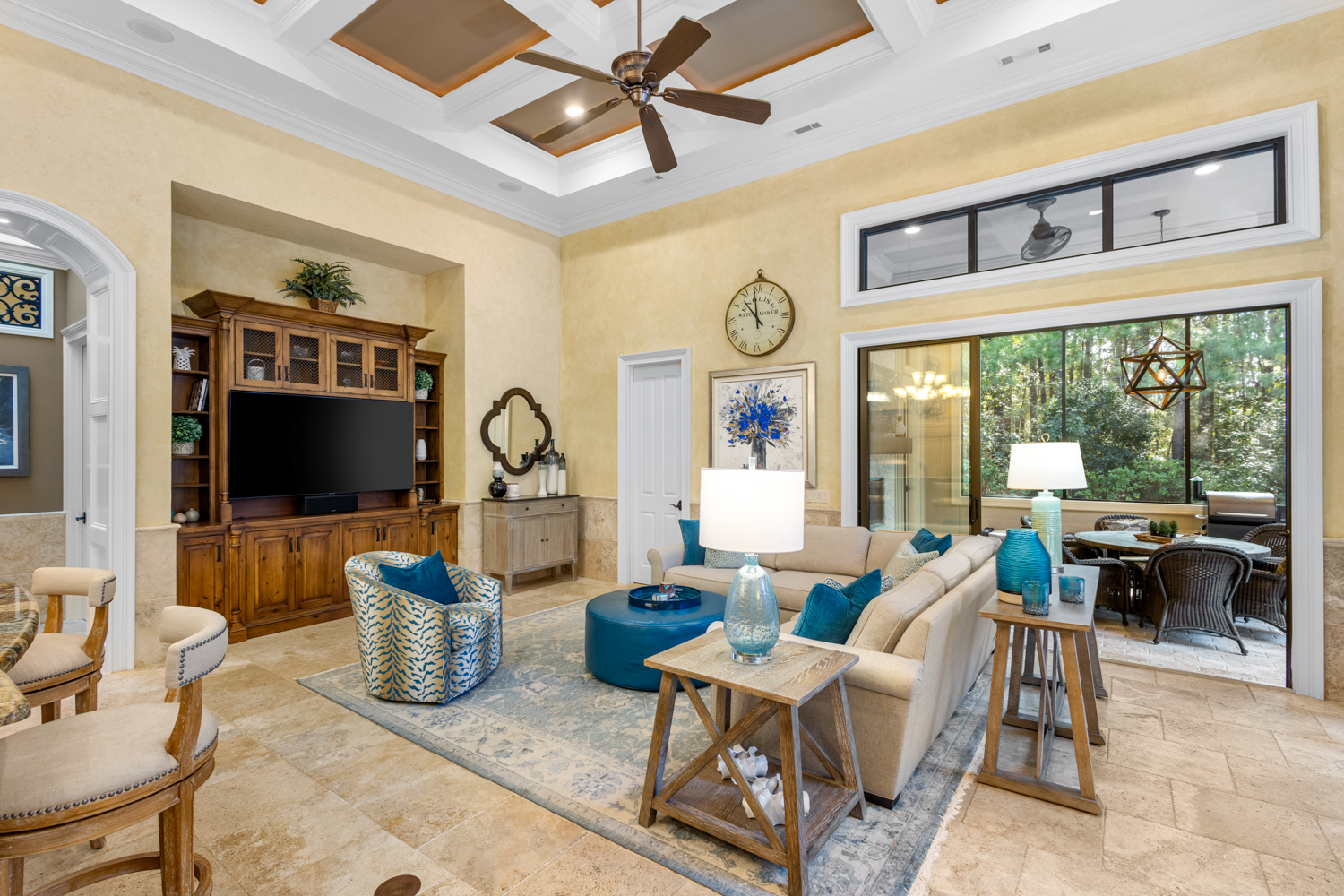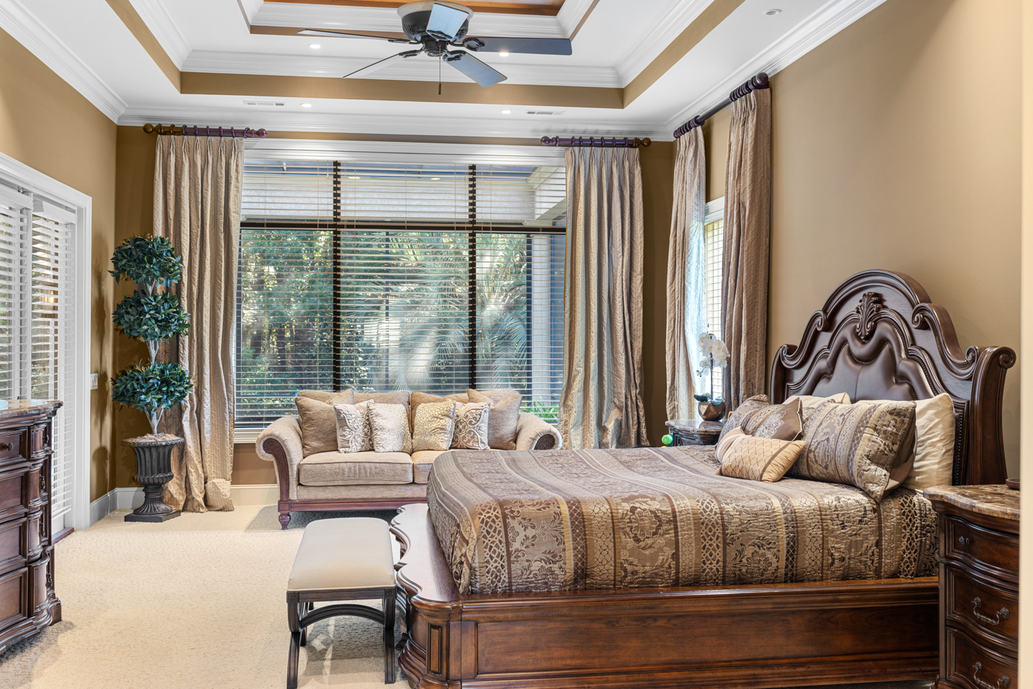 Discover an exceptional opportunity to own a custom-built home in the heart of Berkeley Hall Club, offered well below today's cost of comparable new construction homes! Designed with timeless Lowcountry elegance and every detail in mind, this residence combines luxurious interiors with an unmatched outdoor lifestyle. The home welcomes with dramatic soaring ceilings of backlit coffered trays and extensive custom millwork that set the tone for its refined style. Multiple living areas flow seamlessly for both entertaining and everyday comfort. A private office offers the perfect retreat for work, while a separate in-law suite provides guests with comfort and privacy. The gourmet kitchen and full bar area feature multiple built-in full-sized wine coolers, enhancing both function and sophistication. Step outside to experience one of the homes true highlights: a private saltwater pool and spa surrounded by an oversized covered lanai. Here, an outdoor kitchen, dining space, and sitting area with fireplace create an inviting year-round retreat for entertaining or relaxing in total privacy. With 4 spacious bedrooms, 4 full baths, and 2 half baths, the home offers flexibility for family and guests alike. The owners' suite is a sanctuary, complete with a spa-like bath, private fountain, and direct access to the lanai. Secondary bedrooms are generously sized, and every detail has been carefully crafted to enhance comfort including ensuite baths for each. Perfectly positioned on a private lot yet just a short stroll to the Clubhouse, fitness center, and world-class golf, this home offers both convenience and seclusion. Whether hosting friends for cocktails poolside, enjoying a quiet morning coffee on the lanai, or retreating to the elegance of the great room, this home delivers a lifestyle difficult to recreate.