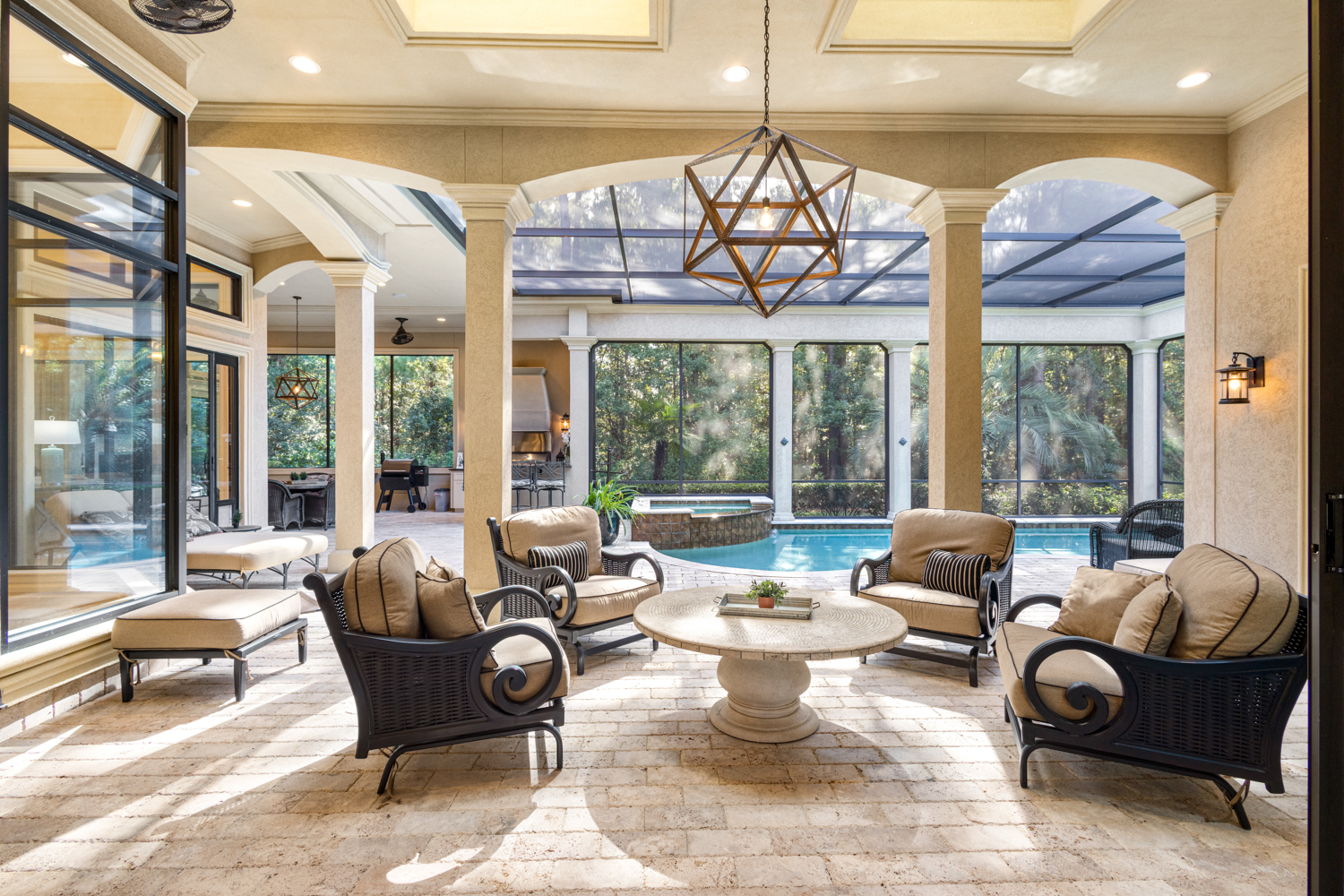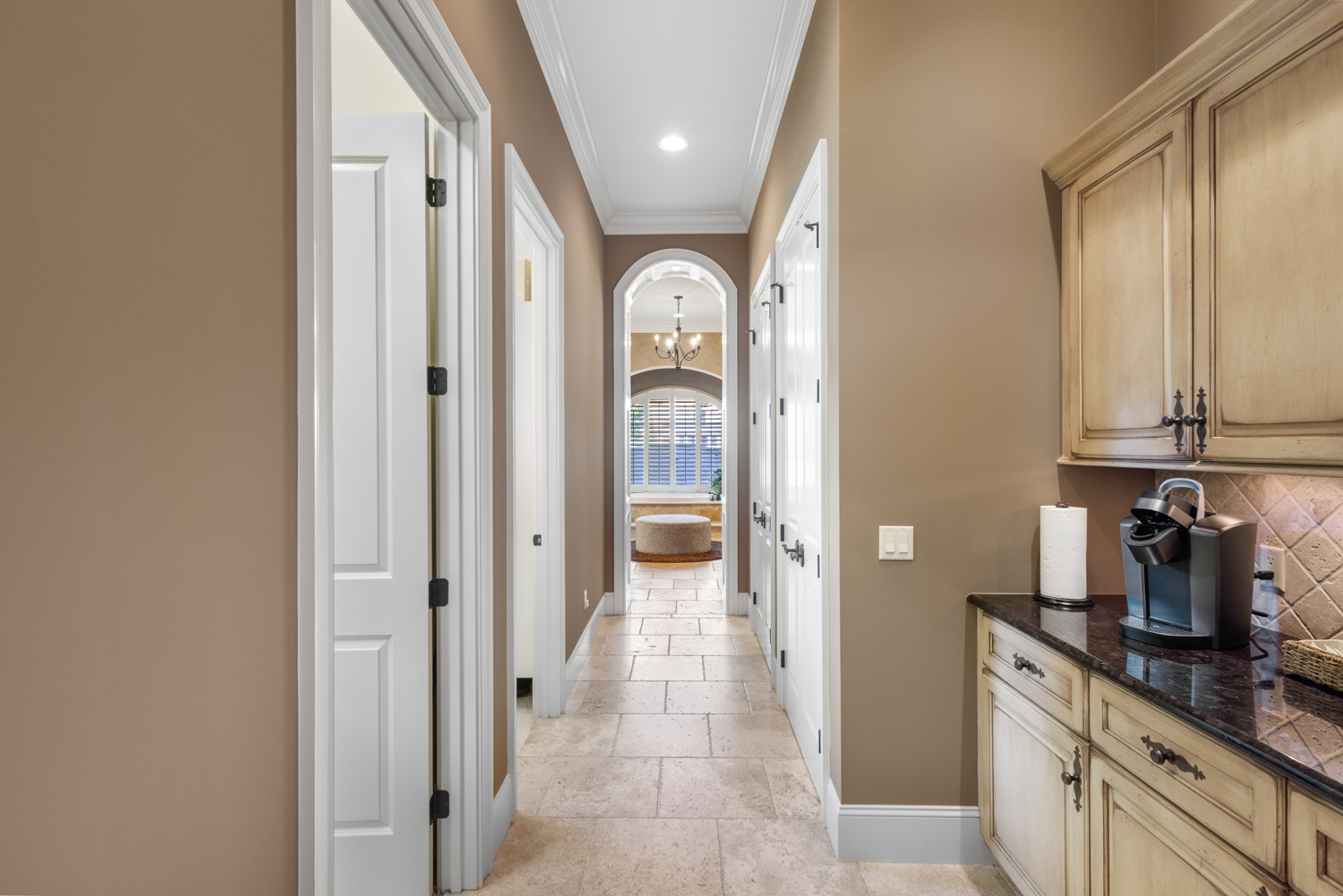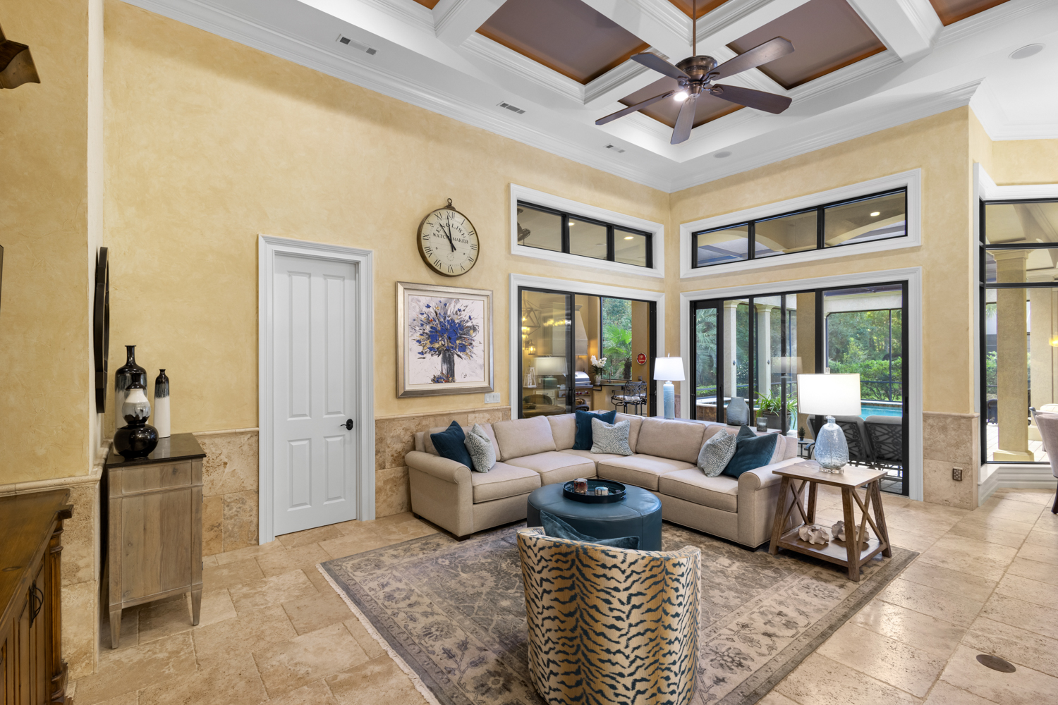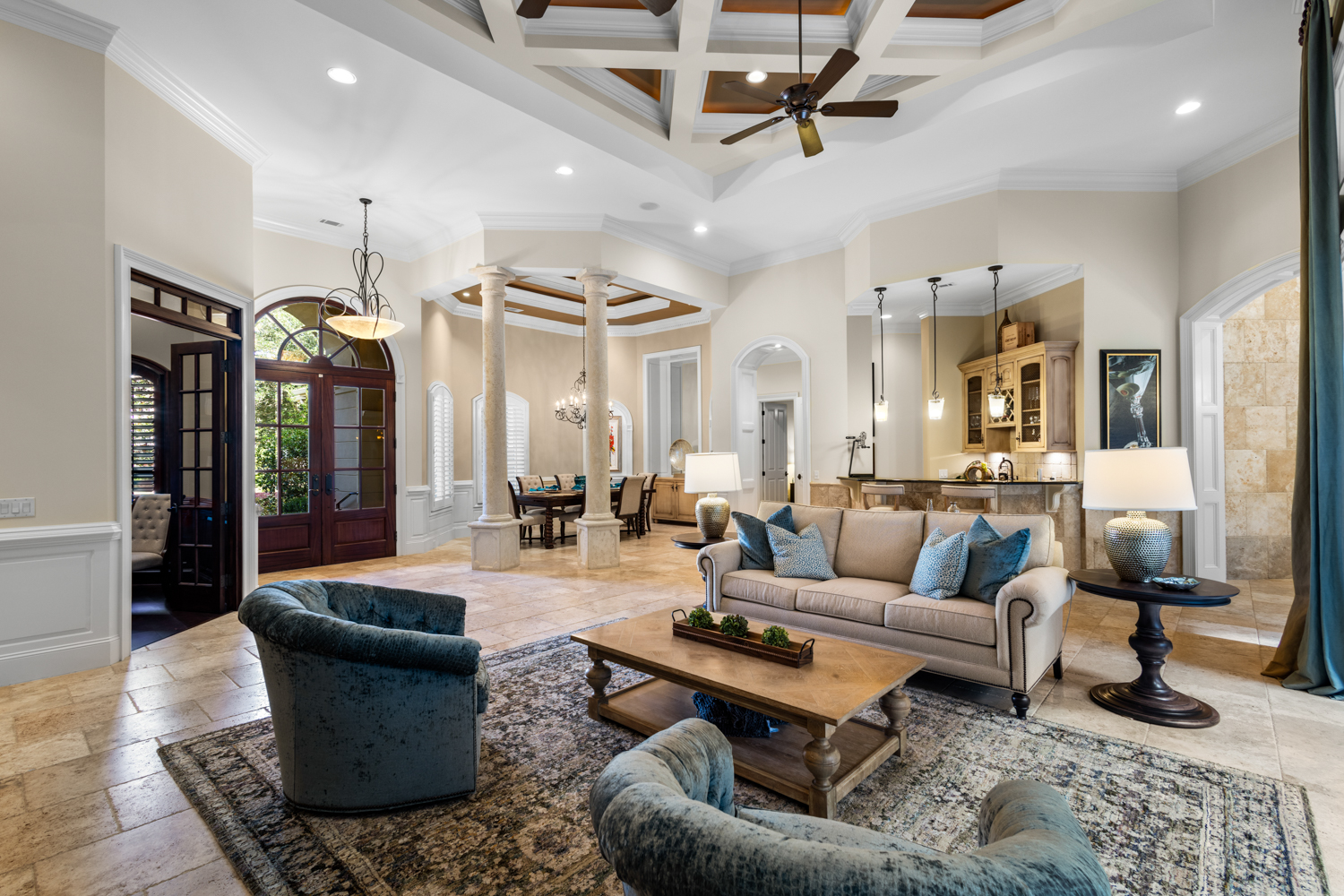 Discover an exceptional opportunity to own a custom-built home in the heart of Berkeley Hall Club, offered well below today's cost of comparable new construction homes! Designed with timeless Lowcountry elegance and every detail in mind, this residence combines luxurious interiors with an unmatched outdoor lifestyle. The home welcomes with dramatic soaring ceilings of backlit coffered trays and extensive custom millwork that set the tone for its refined style. Multiple living areas flow seamlessly for both entertaining and everyday comfort. A private office offers the perfect retreat for work, while a separate in-law suite provides guests with comfort and privacy. The gourmet kitchen and full bar area feature multiple built-in full-sized wine coolers, enhancing both function and sophistication. Step outside to experience one of the homes true highlights: a private saltwater pool and spa surrounded by an oversized covered lanai. Here, an outdoor kitchen, dining space, and sitting area with fireplace create an inviting year-round retreat for entertaining or relaxing in total privacy. With 4 spacious bedrooms, 4 full baths, and 2 half baths, the home offers flexibility for family and guests alike. The owners' suite is a sanctuary, complete with a spa-like bath, private fountain, and direct access to the lanai. Secondary bedrooms are generously sized, and every detail has been carefully crafted to enhance comfort including ensuite baths for each. Perfectly positioned on a private lot yet just a short stroll to the Clubhouse, fitness center, and world-class golf, this home offers both convenience and seclusion. Whether hosting friends for cocktails poolside, enjoying a quiet morning coffee on the lanai, or retreating to the elegance of the great room, this home delivers a lifestyle difficult to recreate.