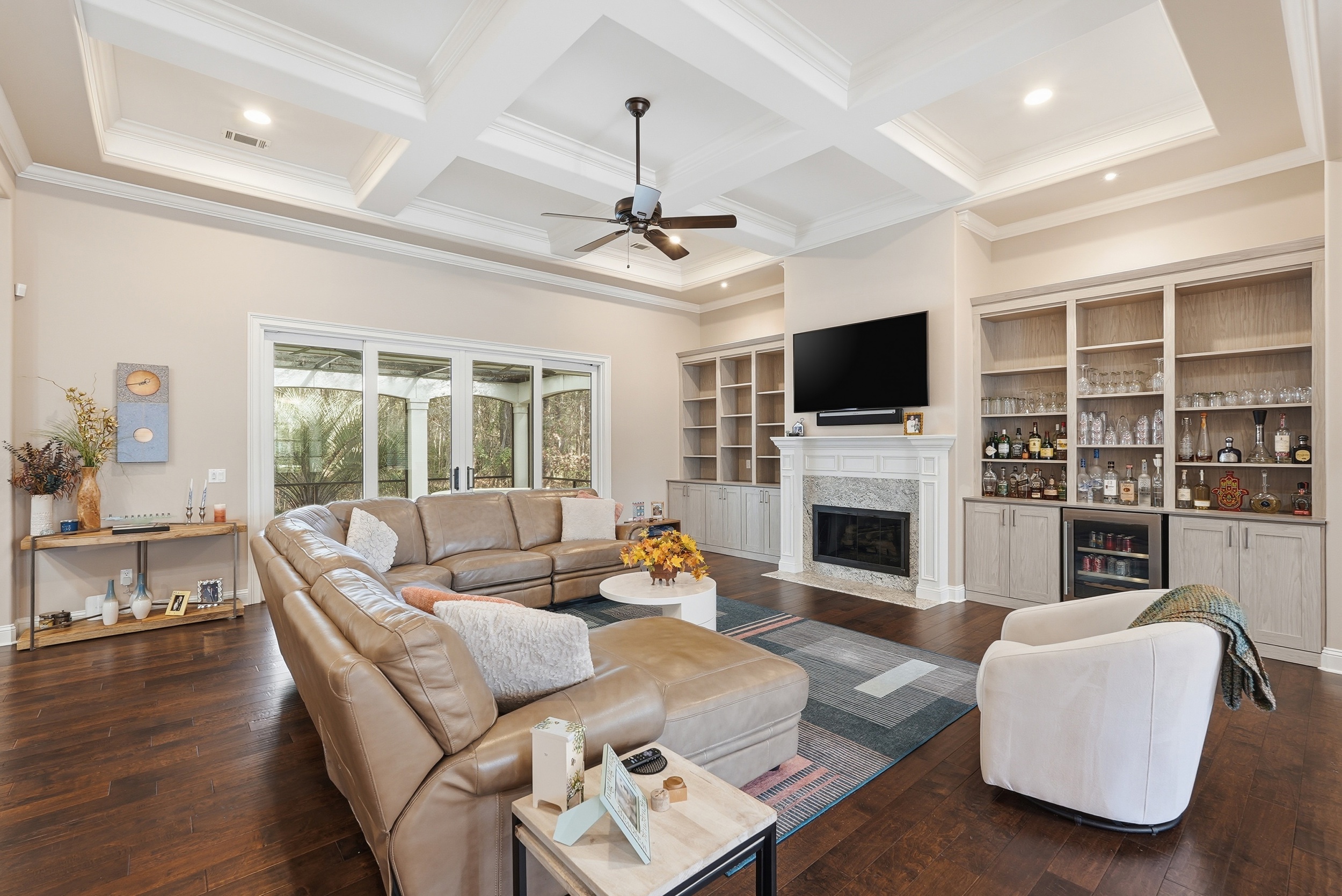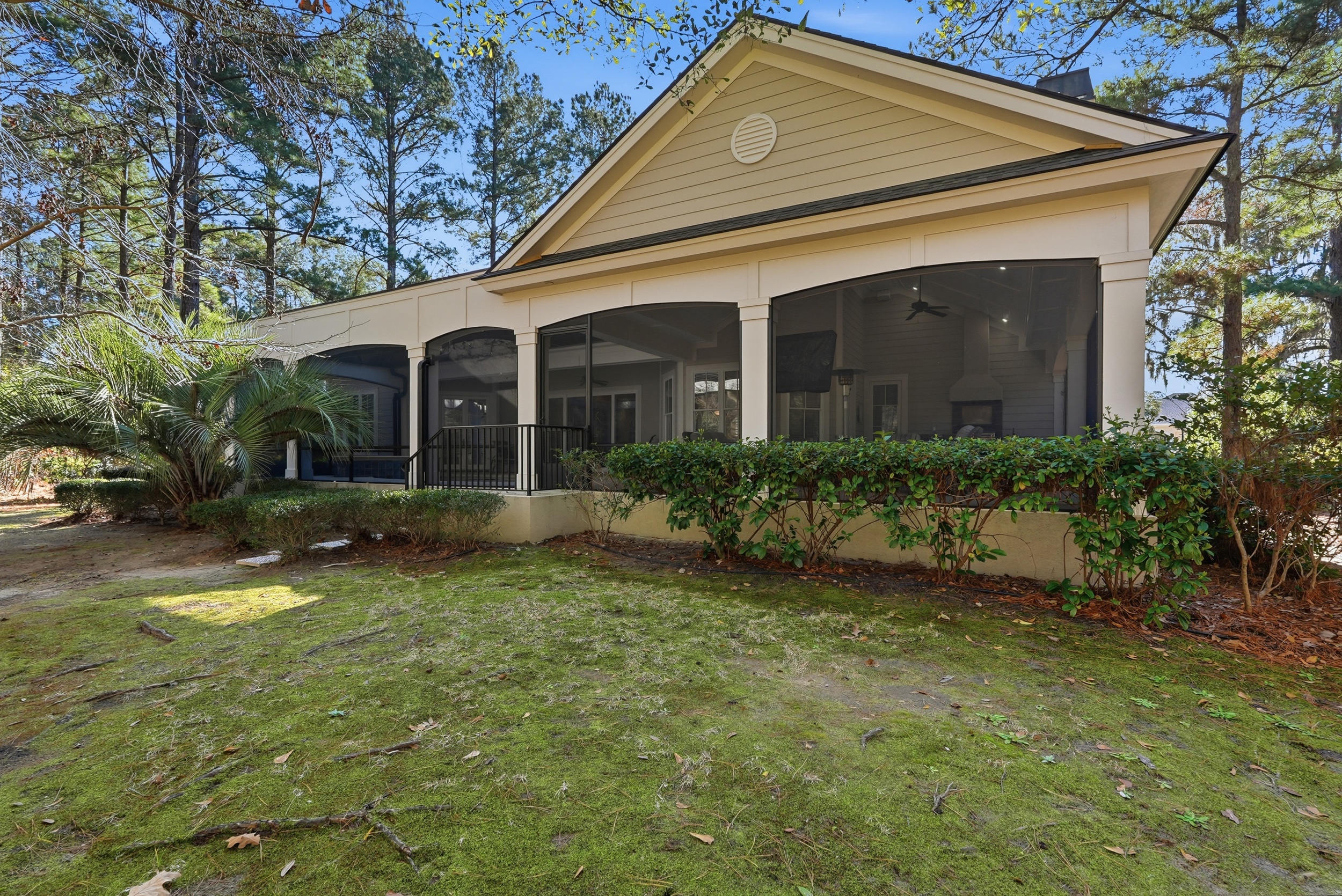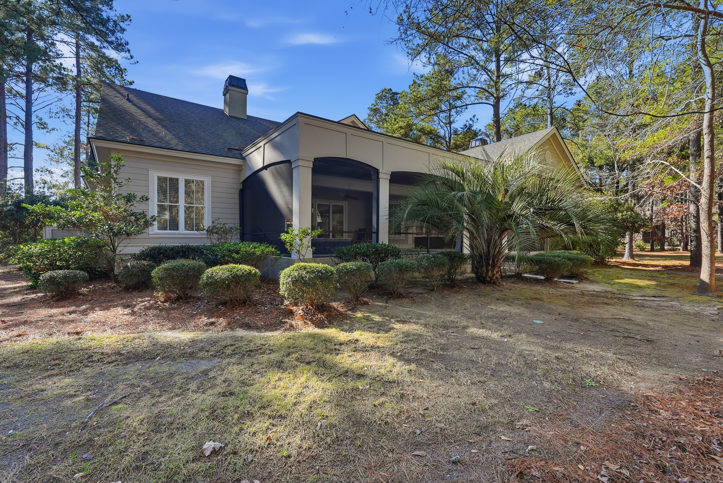 Set within the gates of Berkeley Hall, this refined Lowcountry-style residence is positioned on an oversized .80-acre homesite, offering a serene wooded view and a greater sense of space than most homesites in the community. A neutral palette throughout creates a timeless and cohesive aesthetic. The thoughtfully designed floor plan includes 4 bedrooms (including bonus room suite) , 4.5 baths, and a full office. The great room opens to the kitchen and is highlighted by coffered ceilings and a gas log fireplace. A formal dining room with tray ceiling and a breakfast area off the kitchen provide well-balanced spaces for both entertaining and everyday living. The primary suite features a sitting area, a well-appointed bath, and dual walk-in closets. A bonus room suite with private bath offers flexible space for guests or additional living needs. Outdoor living is anchored by an expansive covered lanai with a free-form pool and spa, built-in outdoor kitchen, and generous lounging areas, all overlooking the wooded setting. The exterior is finished in Hardiplank siding with tabby accents, reinforcing the home's classic Lowcountry architecture. Berkeley Hall residents enjoy access to two Tom Fazio-designed golf courses, an award-winning clubhouse, dining, fitness center and spa, tennis and pickleball courts, walking trails, and access to the Okatie River-all within one of the Lowcountry's most respected private communities.